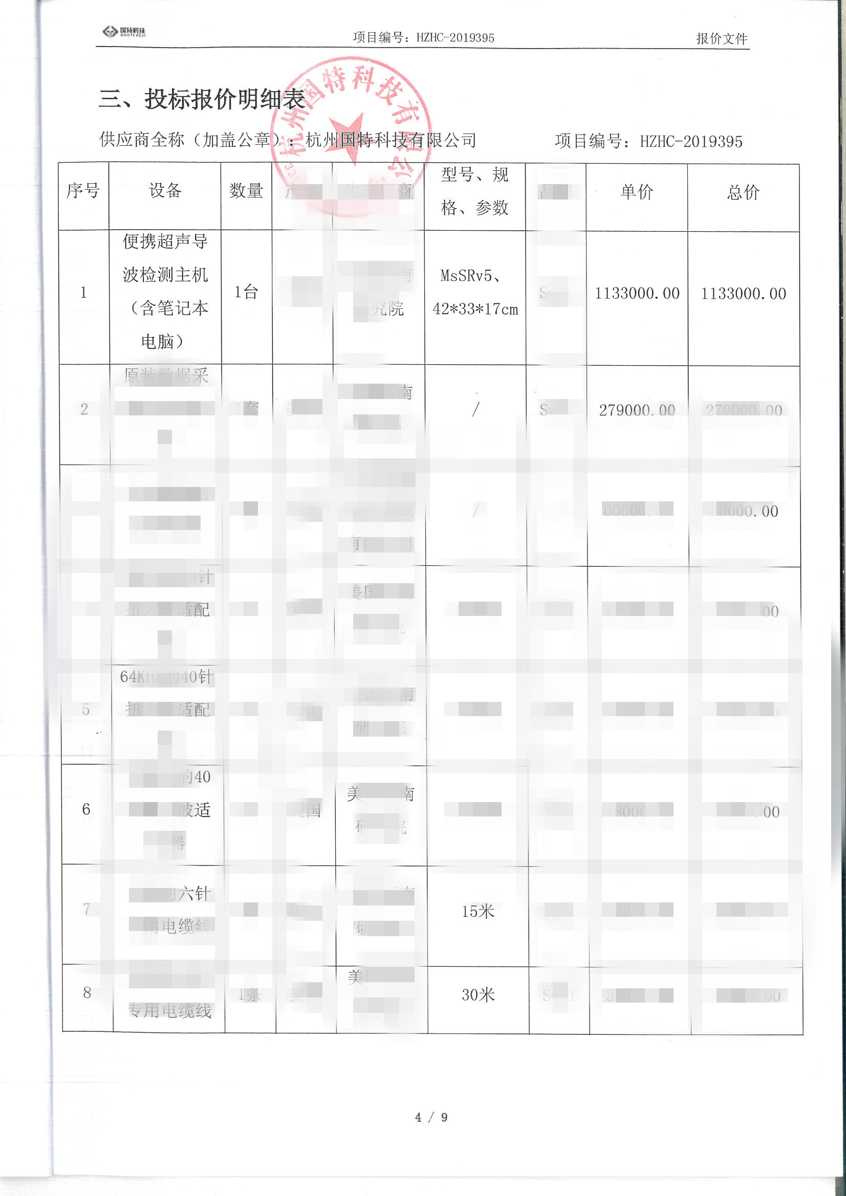 | 1 | 便攜式超聲導波檢測系統及設備采購項目 | 杭州國特科技有限公司 | 詳見(jiàn)附件 | 1批 | 1785800 | 杭州市西湖區留下街道留和路56號1幢405室 |  九、評審小組成員名單:黃俞成、王力、賴(lài)云祥、李明、方永蘭(采購人代表) 十、公告期限:1個(gè)工作日 十一、其它事項:       各參加政府采購活動(dòng)的供應商認為該中標結果和采購過(guò)程等使自己的權益受到損害的,可以自本公告期限屆滿(mǎn)之日(本公告發(fā)布之日后第2個(gè)工作日)起7個(gè)工作日內,以書(shū)面形式向采購人提出質(zhì)疑。質(zhì)疑供應商對采購人、采購代理機構的答復不滿(mǎn)意或者采購人、采購代理機構未在規定的時(shí)間內作出答復的,可以再答復期滿(mǎn)后十五個(gè)工作日內向同級政府采購監督管理部門(mén)投訴。質(zhì)疑函范本、投訴書(shū)范本請到浙江政府采購網(wǎng)下載專(zhuān)區下載。 十二、聯(lián)系方式:    1、采購代理機構名稱(chēng):浙江華誠建設工程招標代理有限公司 聯(lián)系人:孫靜 聯(lián)系電話(huà):0572-2506626 地址:湖州市祥和花園西區29幢1樓 2、采購人名稱(chēng):湖州市特種設備檢測研究院 聯(lián)系人:方女士 聯(lián)系電話(huà):0572-2523106 3、同級政府采購監督管理部門(mén)名稱(chēng):湖州市財政局政府采購監管處 聯(lián)系人:何先生 監督投訴電話(huà):0572-2150037  便攜式超聲導波報價(jià)公示1.jpg  便攜式超聲導波報價(jià)公示2.jpg  便攜式超聲導波報價(jià)公示3.jpg